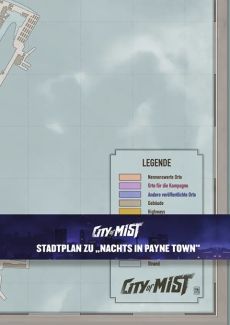 Dieser Stadtplan zeigt auf der Vorderseite eine neutrale Ansicht der City of Mist (eine generische amerikanische Großstadt)¸ auf der Rückseite eine Version mit Orten für die Kampagne Nachts in Payne Town sowie weiteren¸ in anderen Publikationen beschriebenen Orten.