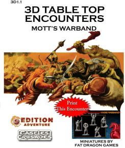 Mott's Warband includes an encounter with a raiding band of five ogres. Stats for both Castles & Crusades and the 5th Edition of the Worlds most popular RPG are included at the end.
