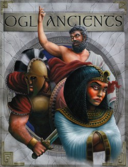 OGL Ancients is a roleplaying game set in a world long past¸ where Greek heroes do battle with horrendous monsters and Egyptian priests pray to weird¸ animal-headed divinities. This is an environment that many roleplayers will not have ventured into before. Instead of cottages¸ castles and dungeons¸ the environment is one of great columned temples¸ amphitheatres¸ pyramids and hanging gardens¸ where wise or corrupt kings rule over their monstrous empires and wars are fought for generations over the hand of one beautiful queen. The world of the Ancients is one of true heroes remembered forever after¸ where a man favoured by the Gods can rise from the humblest of origins to command half the world.
