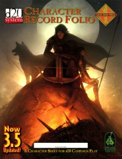 You need more than a flimsy piece of paper for your character and that's where the d20 System Character Record Folio comes in. Say goodbye to cramming your notes and magic items onto a single sheet¸ the folio is designed to handle your character for the entire campaign. Its 16 beautifully designed pages include great add-ons like mini-record sheets for your paladin's warhorse¸ familiar¸ and cohorts¸ and adventure logs that let you track important events and NPCs. The d20 System Character Record Folio is good for any character in any d20 game. Even better¸ this Origins Award winning accessory has been 3.5 updated¸ so it reflects the cutting edge of the core rules.