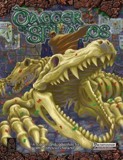 Dagger of Spiragos is a sequel to the 2014 Gen Con Scarred Lands Special Preview adventure¸ Gauntlet of Spiragos (available as a free download. com and RPGnow.com). It is also the second adventure in the Spiragos Saga¸ with Ring of Spiragos¸ the dramatic finale¸ as the third and culminating title.