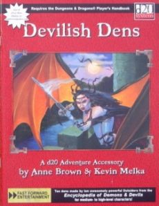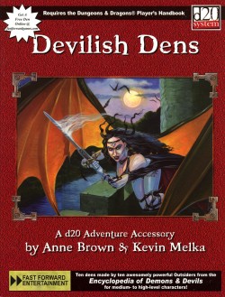 Devilish Dens (d20) Fast Forward Entertainment Anne Brown James M. Ward Kevin Melka D20-System 🔗 Quellenmaterial Heft¸ Softcover 48 Seiten EnglischEnglish 2002 Unterstütze Deinen lokalen Spieleladen vor Ort!Support your local dealer 🔗 DescriptionDescription An accessory to the Encyclopedia of Demons & Devils¸ this sourcebook is filled with ten of the most deadly dens of the Plane's most powerful devils.