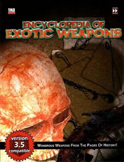 The "Encyclopedia of Exotic Weapons" presents 107 different weapons¸ from the Aikuchi to the Blunderbuss to the Zaghnal and each of which is a real historical weapon. Every entry in this book (some of which list multiple versions or variants) includes not only an illustration of the weapon¸ but also information about who actually used these weapons - and how they used them - along with fictional information for use in any fantasy campaign.