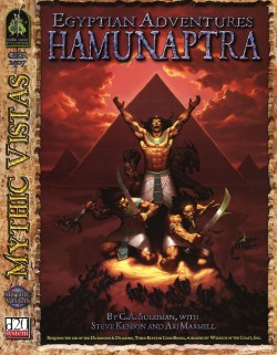 Green Ronin has published the three-volume Mythic Vistas Campaign: Egyptian Adventures: Hamunaptra. The boxed set provides three separate books¸ which together allow gamers to play the world's most popular role-playing game in Hamunaptra¸ a new fantasy setting inspired by the myths¸ legends¸ and cultures of ancient Egypt. The first volume in the set provides complete information on the classes¸ races¸ feats and magic of Hamunaptra¸ while the second is a complete gazetteer of the continent¸ and the third book is filled with Game-Master-only secrets.
