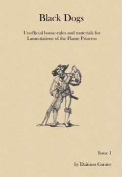 Black Dogs is a dark fantasy collection of house-rules¸ materials¸ adventures¸ monsters¸ and together a toolbox to generate new content for OSR systems¸ particularly focused on Lamentations of the Flame Princess. Black Dogs shares a common set of rules and aesthetics with Lamentations¸ but it has its distinct flavor. Whenever a rule is not found (or not presented yet) in the Black Dogs 'zine¸ just use the default from Lamentations or whatever OSR system you're running.