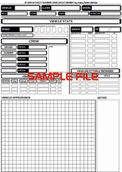Stars Without Number Vehicle Datasheet Universell 🔗 Angry Golem Games Stars Without Number 🔗 Quellenmaterial PDF¸ Original electronic 1 Seiten EnglischEnglish 2020 Als PDF erhältlich bei DrivethruRPGAvailable as PDF at DrivethruRPG Unterstütze Deinen lokalen Spieleladen vor Ort!Support your local dealer 🔗 DescriptionDescription Vehicle Datasheet for Stars Without Number
