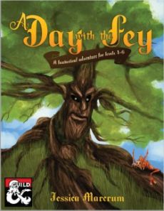 It all begins with the dryad's funeral... Suddenly¸ your party is (quite possibly accurately) blamed for her death and forced to pay recompense by undergoing three trials under the watchful eye of of her dearest friends. The penalty for failure? Well¸ let's just say no one in the Feywild takes kindly to oathbreakers. Featuring a delightful assortment of feyfolk to entertain and annoy¸ including: Thizzletwit the pixie. She's rooting for you! Grizelda¸ Imelda¸ and Zorfelda¸ the hag coven. They want you out of their swamp! Grumbles the blink dog. He's a naughty puppy! Plumpsanthymum¸ the head chef of the Seelie Court. Let her work in peace! PLUS displacer kittens¸ rust weevils¸ myconids with hallucinatory spores¸ and more! You'll never forget your Day with the Fey. A Day with the Fey can be run with 4-6 players level 4-6 and is optimized for 5 players with an average player level (APL) of 5. Cover art by Liz Gist Interior art and layout by David Markiwsky Maps by Fernando Salvaterra Edited by Catherine Evans