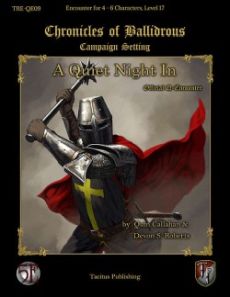 A Quiet Night In is a Q-Encounter¸ or Quick-Encounter¸ that can be run for a group of four to six players with 17th-level characters. This encounter would be considered a 'medium' to 'hard' encounter.