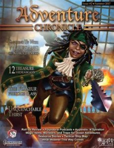 Issue #2 of Adventure Chronicle magazine by AAW Games The tabletop roleplaying game magazine compatible with Dungeons & Dragons 5th Edition and the Pathfinder Roleplaying Game. Publisher's Corner By Jonathan G. Nelson Catching Up With Wolfgang Interview with the Kobold-in-Chief Seaborne Stories By Stephen Rowe Oi! Get Off the Boat! By Brian Wiborg Mønster The Unquenchable Thirst By Micheal Allen Hide Yer Loot¸ Matey! Michael Allen The Flâneur Prestige Class By Stephen Yeardley The Gauntlet: Traps & Hazards for Your Adventures By Rory Toma The Arcanarium: Magic Items for Your Adventures By Justin Andrew Mason¸ Rory Toma¸ and Stephen Yeardley The Menagerie: Monsters for Your Adventures By Michael Smith and Stephen Yeardley Game Night Grub By Rachel Ventura Roll for Review Endzeitgeist Reviews Celadon Shores What Weather This Way Comes By Stephen Yeardley Sidebars by Justin Andrew Mason: Adding Magic to Your Game Appendix: N'spiration Polyhedral Podcasts Tales From the Tabletop AAW Community Comic