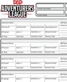 Adventurers League Compact Logsheet