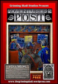 Grinning Skull Studios proudly present the first volume in our new title range¸ The Adventurer's Post. Part Printable Prop¸ part Adventure module collection. Containing five linked mini adventures complete with accompanying print out props¸ maps¸ notices and adventure location details. All these linked by the idea of the Job post board in the local tavern or square that players look at when finding new quests and ways for making money! With this being a new range¸ please if you don't mind¸ feel free to give as much feedback as you can¸ so that we can keep on improving and expanding this range for future installments!