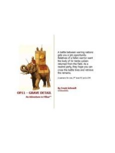Grave Detail has your mid-level PC asked to retrieve the remains of Sir LaGain from the nearby battlefield. The relatives have learned of the man's demise and are willing to pay a sizable sum for the body's return. While the battle has ended¸ dangers remain. Can your solo PC bring closure to a noble death?
