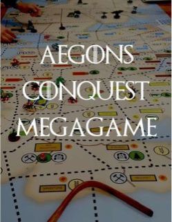 Aegon's Conquest is a medieval fantasy themed tabletop megagame¸ meaning that it is an interactive experience where a large number of players work either together or against each other to affect the greater storyline. Aegon's Conquest is a team-based competitive endeavor with tightly defined rules and player options. The game aligns its players into eight major factions of four players each with the ultimate goal to have the most points by the end. It encourages face-to-face diplomacy¸ tactical play¸ secret dealings¸ betrayal¸ and heartfelt roleplaying. The game is based on the history and deep lore as presented in the A Song of Ice & Fire literary series¸ though knowledge of the source material is not needed to play or run this game.