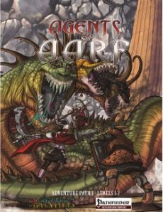 Agents of A.A.R.F is a Pathfinder Compatible Adventure Path that guides PCs through the Seven Realms of Layna¸ a continent dominated by Animal/human hybrid races. <o:p></o:p/span/ppspan>As the PCs work for A.A.R.F (The Arcane Artifact Recovery Force)¸ a prestigious black ops unit under the control of the Canine Kingdom¸ they will have the opportunity to explore long lost dungeons and ruined cities¸ interact with major political and social leaders throughout the Seven Realms¸ and build their reputation as heroes and protectors of all the Hybrid races.<o:p></o:p/span/ppspan>Agents of A.A.R.F does not require the Anthro Adventures World Guide to run¸ however the background information given for each race¸ religion¸ and political system can greatly enhance the players understanding and enjoyment of the setting. <o:p></o:p/span/ppspan>Volume 1 of The Agents of A.A.R.F Adventure Path will take your PCs from level 1 to level 3 through the following chapters:<o:p></o:p/span/ppspan>Chapter 1: The Howling Mine: Stolen gems from a recently re-opened mine has the miners claiming the place is haunted by evil spirits known as tommyknockers. Can the newest Agents of A.A.R.F discover the true source of the problem and get the miners back to work?<o:p></o:p/span/ppspan>Chapter 2: The Furmin Infestation: An experiment gone wrong has created a race of giant¸ furry insects known as furmin that are laying siege to Rodentia's capital city. Can A.A.R.F discover the source of these abominations and stop it before the city completely crumbles?<o:p></o:p/span/ppspan>Chapter 3: A Tundra of Fun: Famed Penguin-kin art thief and former agent of A.A.R.F¸ Bow-tie Bill Pepperwiggle¸ has stolen a valuable portrait of the future Ruminant queen¸ known as the Mooing Lisa. Can A.A.R.F recover this exquisite painting and apprehend Bow-tie Bill before the royal wedding is ruined?<o:p></o:p/span/ppspan>In these three chapters you will get access to:<o:p></o:p/span/ppspan>· 20+ brand new monsters¸ each with detailed stat blocks and artwork.<o:p></o:p/span/ppspan>· Detailed overland and dungeon maps for terrain dependent encounters<o:p></o:p/span/ppspan>· Five pre-gen characters¸ pre-leveled so that new players can join at any time. <o:p></o:p/span/ppspan>· Detailed information on three new hybrid races (penguin¸ polar bear¸ snake) bringing the total number of playable races in the Seven Realms to 24. <o:p></o:p/span/ppspan>· Volume 1 of Agents of A.A.R.F is 120 pages long¸ and will take approximately 9-12 (4-hour) sessions to complete. <o:p></o:p/span/ppspan>Agents of A.A.R.F will continue with three additional volumes¸ taking the total adventure to level 12. The volumes will be released in October 2017 (vol. 2)¸ December 2017(vol. 3) and February 2018 (vol 4.)<o:p></o:p/span/p/ende>