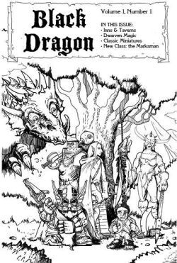 Black Dragon presents articles for your old school gaming experience! This first issue contains a 30-page article for generating interesting taverns¸ including tables for randomly generating the tavern's name¸ postings for adventuring jobs¸ events¸ rooms¸ staff¸ atmosphere¸ unique foods & drinks¸ unique aspects¸ and more. You will also find a review of some old-school miniatures from Grenadier¸ Ral Partha¸ TSR¸ and Otherworld Miniatures. A new NPC in the form of the runemage presents the referee with a unique brand of dwarf. Finally¸ a new class called the Marksman gives players a chance to play a Robin Hood type of character!