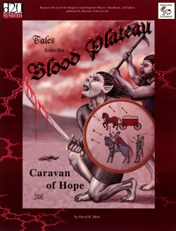 Blood Plateau 1: Caravan of Hope (d20) Fantasy 🔗 Monkey God Enterprises MonkeyGod Enterprises David K. Hurd Universell Abenteuer 🔗 Abenteuer Softcover 28 Seiten EnglischEnglish 12 Euro 2001 Unterstütze Deinen lokalen Spieleladen vor Ort!Support your local dealer 🔗 DescriptionDescription d20 - David K. Hurd - Caravan of Hope" is a d20 system adventure suitable for third or fourth level characters.