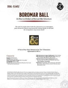 Boromar Ball is legal for D&D Adventurers League play and part of the Embers of the Last War storyline! Adventure Code: DDAL-ELW02.