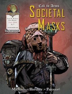 Call to Arms is a book line for players and gamemasters alike. Each book focuses on a different type of item¸ expanding rules for those items and adding everything from new mundane and magical examples of the item to new character options related to the item. Call to Arms: Societal Masks includes nearly 30 new masks drawn from the rich history of the real world¸ and an exploration of their role in various intrigues that draw on the newestPathfinder Roleplaying Game: Ultimate Intrigue rules. Here you'll find masks inspired by those used in Venice's carnival¸ as well as masks used in war (drawn from ancient Romans and Greeks¸ to historic samurai¸ to modern-day fighters); in medicine; in entertainment (from masks inspired by Japanese Noh theater¸ to disguises in pulp and superhero c on¸ to Mexican wrestling); and in punishment (drawing on historic European terrors like the scold's bridle and the mask of infamy). In addition¸ masks are perfectly suited to an intrigue-based game¸ and this book explores rules in Pathfinder Roleplaying Game: Ultimate Intrigue¸ presenting a sample masquerade encounter as well as other ways masks may affect similar social adventures.