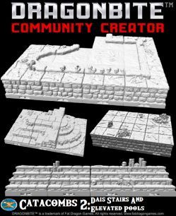 Catacombs 2: Dais Stairs and Elevated Pools Fantasy 🔗 Aether Studios Universell Abenteuer 🔗 Abenteuer PDF¸ Original electronic EnglischEnglish 2018 Als PDF erhältlich bei DrivethruRPGAvailable as PDF at DrivethruRPG Unterstütze Deinen lokalen Spieleladen vor Ort!Support your local dealer 🔗 DescriptionDescription Included in this set are 26 tiles for expanding your catacomb dungeons. Compatible with all other Fat Dragon Games terrain.