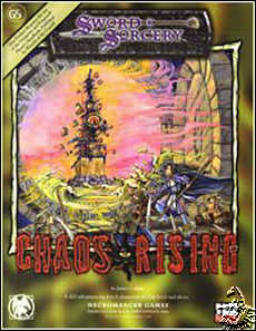 The Amulet of a Demon Prince. In a few days¸ the rising blood moon will reveal the resting-place of the soul amulet of a forgotten demon prince. A dark lord seeks the amulet and if he finds it¸ ultimate power shall be within his grasp. Someone must stop him and his diabolical scheme before evil is unleashed! But for the heroes to beat the dark lord to his prize¸ they must travel through time and conquer demonic foes! A Battle Throughout Time. Completely customizable for any fantasy campaign¸ Chaos Rising is a classic dungeon exploration adventure designed for 4 or more characters of at least 12th level. It details an ancient and abandoned dwarven citadel in which the demonšs amulet is hidden¸ and contains unique encounters where characters can travel back in time to shape the very future itself! [Quelle: White Wolf]