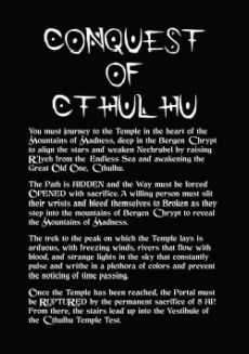 Conquest of Cthulhu is an independent production by Michael Mars Gaming and is not affiliated with Ockult Örtmästare Games or Stockholm Kartell. It is published under the MÖRK BORG Third Party License.