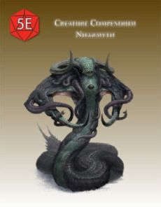While often referred to as the Nharmyth Vampire¸ for many compelling reasons¸ the Nharmyth is not an undead creature¸ but a highly sophisticated nocturnal leech. It is a fiercely intelligent¸ long-lived invertebrate¸ which produces a flexible exoskeleton¸ and great horns to defend itself. From the main serpentine body¸ green and purple tentacles extend¸ and a single eye is set below its head. " Introducing the Nharmyth¸ a monstrous leech-like creature; the presence of which is often mistek for vampires. Based on the concept and illustrations by Nicholas Cloister of www.MonstersByEmail; converted for use with the Fifth Edition (5E) of the worlds greatest roleplaying game. The creature compendium is a seres of small publications¸ each designed to introduce a new and interesting creature. Each publication includes the background and statistics for the creature; along with adventure ideas to help the game master add the creature to their campaign. Included with this product are two pages of pawns ready for you to print out and assemble. Liven up your battlefield with these alternatives to miniatures. Look out for more titles in this series.