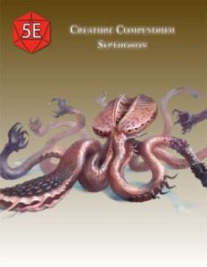 Great and powerful¸ the Septhorons are different from the giant octopus in a number of ways. Typically they will be found still upon the bottom¸ close to their dens¸ passively filtering seawater through openings in their heads and the tentacle ‘hands'. Other than these they have no mouths¸ and can survive on plankton for weeks¸ but will not be fully sustained by them. Now and then they need attack larger life-forms like sharks¸ dolphins¸ seals¸ and great eels. " Introducing the Septhoron¸ a twisted abomination distantly related to the giant octopus. Based on the concept and illustrations by Nicholas Cloister of www.MonstersByEmail; converted for use with the Fifth Edition (5E) of the worlds greatest roleplaying game. The creature compendium is a seres of small publications¸ each designed to introduce a new and interesting creature. Each publication includes the background and statistics for the creature; along with adventure ideas to help the game master add the creature to their campaign. Included with this product are two pages of pawns ready for you to print out and assemble. Liven up your battlefield with these alternatives to miniatures. Look out for more titles in this series.