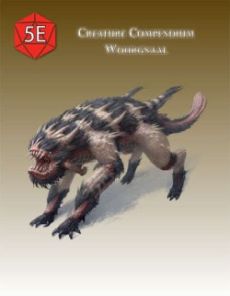 More than being thought of as an animal species¸ the Wohrgnaals are considered a plague. In forest villages and other rural settlements the word Wohrgnaal is heavily connected with destruction¸ with suffering¸ and with death. While trolls¸ pixies¸ wolves¸ and boars¸ appear in children's stories and lore with varying roles and character¸ the Wohrgnaals always symbolize disaster. " Introducing the Wohrgnaal¸ a monstrous beast tainted by demonic essence; roaming the world as a plague given beast form. Based on the concept and illustrations by Nicholas Cloister of www.MonstersByEmail; converted for use with the Fifth Edition (5E) of the worlds greatest roleplaying game. The creature compendium is a seres of small publications¸ each designed to introduce a new and interesting creature. Each publication includes the background and statistics for the creature; along with adventure ideas to help the game master add the creature to their campaign. Included with this product are two pages of pawns ready for you to print out and assemble. Liven up your battlefield with these alternatives to miniatures. Look out for more titles in this series.