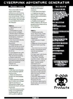 Cyberpunk Adventure Generator is a set of random tables to create cyberpunk-themed missions for any system! There are no rules¸ just tables to get your inspiration flow.