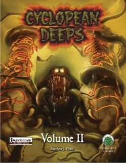 Cyclopean Deeps Volume 2 is the second half of a two-volume set. It should only be purchased in tandem with Volume 1¸ and in a ratio of a half to three-quarters of the number of first volumes ordered. Based on the interlocking nature of the two products¸ purchasers of Volume 1 are very likely to come back for Volume 2.
