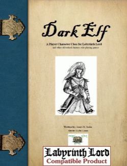 The shadowy¸ mysterious dark elves have long haunted the world in whispers and myth¸ but with the Dark Elf class for use with Labyrinth Lord and other old-school fantasy role-playing games¸ you can shed light on these elusive creatures! This fully playable 10 level class is designed to allow players to experience all the sinister gifts of these shadowy kin-slayers!