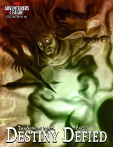 The Brightsong heir has been rescued from the clutches of the Kur-Tharsu¸ but the Moonsea is still rising. The adventurers must travel to the Isle of Maos¸ and there fulfill their most difficult challenge yet; convincing Will Brightsong to fulfill his destiny! A 4-hour adventure for 5th-10th level characters Destiny Defied premiered at Holiday Around the Moonsea in November 2017. It is the third part of the Song of Maos trilogy. Maps for encounters and Adventurers League magic item certifications are included. Find the rest of the story here! Threatening Tides Prophecy's Promise