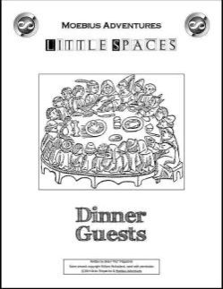 Little Spaces: Dinner Guests offers a collection of five tables to inspire more evocative descriptions of dinner guests at important social events the PCs may encounter. Whether there is fantastic food and entertainment¸ political intrigue¸ or simple revelry¸ you never know exactly who might be interesting to chat with at a party. Now you can come up with tons of potential guests to explore¸ whether your game is set in a fantasy world or not.