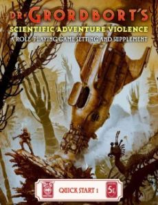 Developed by Crowbar Creative and licensed by Stardog¸ Dr. Grordbort's Scientific Adventure Violence will be published by Exalted Funeral and will Kickstart in August 2022. In the runup to the crowdfunding campaign¸ a trove of Quick Start material is being released. This first batchwhich contains setting information and rules¸ an adventure module¸ five pregenerated characters¸ and dozens of monsters¸ weapons¸ equipment¸ and NPCs . Additional Quick Start materials-four adventure paths¸ eight more pregens¸ and more monsters-will be released in April¸ May¸ June¸ and July on the Crowbar Creative Patreon .