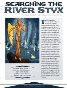 EN5ider 111: Searching the River Styx (5e) Fantasy 🔗 EN Publishing Ellis Goodson Mike Myler Universell Abenteuer 🔗 Abenteuer PDF¸ Original electronic EnglischEnglish 2019 Als PDF erhältlich bei DrivethruRPGAvailable as PDF at DrivethruRPG Unterstütze Deinen lokalen Spieleladen vor Ort!Support your local dealer 🔗 DescriptionDescription A scaling adventure for 4-5 recently deceased PCs of 3rd-16th level.