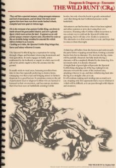 Encounter: The Wild Runt (5e) Fantasy 🔗 Dungeon Masters Guild Stephen Bull Universell Abenteuer 🔗 Abenteuer PDF¸ Original electronic EnglischEnglish 2019 Als PDF erhältlich bei DrivethruRPGAvailable as PDF at DrivethruRPG Unterstütze Deinen lokalen Spieleladen vor Ort!Support your local dealer 🔗 DescriptionDescription A wild spectre¸ the ghost of a long dead Goblin King¸ roams the land and needs defeating! The Wild Runt offers a simple encounter with a spectral foe for players out in the wildenress of any world.