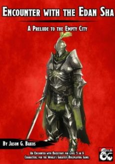 group of bandits called the Edan Sha are active in the shady parts of the city. Perhaps they stole from you¸ or maybe you were hired to defeat them. Whatever the reason¸ you find yourselves fighting against the gang. Little did you know that they had an ace up their sleeve! Featured as the Product of the Week¸ by the DMs Guild Newsletter¸ "An encounter with the Edan Sha"! This encounter is made up of a droppable scenario¸ built around the group of the Edan Sha and the Helmed Horror that Hegemon bestowed them with. It can be used as a prelude to the adventure "King to an Empty City"¸ also found on the DM's Guild! This free product includes: The Edan Sha¸ a fleshed out NPC bandit group. The encounter¸ along with tips on how to run it. Monster stat blocks for Reedak the Gutter¸ the Edan Sha and the Helmed Horror. A new uncommon item. A plot hook to King to an Empty City. If you enjoyed this¸ you may like the Copper Best Seller King to an Empty City¸ where you can explore a city with its populace vanished and fight your way through hoardes of undead in its castle. You may also like The Necromanteion¸ a dungeon crawl based on a real world temple¸ with action against undead¸ roleplaying opportunities and the chance to speak to the dead! Check out The Dungeoneer's Pack I¸ Stormking's Barrows¸ a collection of 10 dungeons based in the North¸ and enrich your gaming experience with the Malady Codex¸ the definitive guide to using fantastical and magical diseases as storytelling tools!