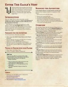 Enter the Eagle's Nest" is a short and simple one-shot D&D adventure for 4-6 players of Lvl 3. The adventure is set amidst the backdrop of a siege against a castle called 'The Eagle's Nest'¸ situated atop a treacherous mountain peak. The army has not been making progress against the castle and has brought in a group of expendable adventurers to aid them in a secret mission to infiltrate the castle.
