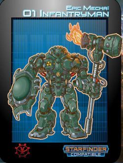 Each Epic Mecha attempts to give players and gamemasters new¸ giant robots for the Starfinder Roleplaying Game in a single¸ small volume. Each book brings you one mecha¸ designed for use against ground forces (troops and vehicles)¸ other mechas¸ or even starships in the Starfinder Roleplaying Game. The design of each Epic Mecha is to provide just enough material to help you add the element to your game.