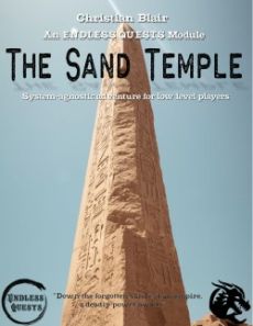 The Sand Temple (EQ4) is a story driven short adventure designed for low level players¸ for use with any generic fantasy system TTRPG. The adventure is themed around exploring an ancient temple in the middle of the desert¸ hiding dark powers and amazing treasure beneath the sand. Danger awaits around the corner¸ and the players must be wary of the wandering shadows lurking beneath their feet. While their mission may seem simple¸ and their reward great¸ the possibilities of certain death are always following close by.