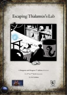 Sometimes sneaking into the dungeon¸ avoiding traps and slaying monsters is the easy part. The hard part is getting back out alive. This is a dungeon crawl adventure with a twist¸ the adventure starts at the end of the dungeon with the party trying to find their way back to safety. Escaping Thalamus's Lab is a Dungeons & Dragons 5th edition adventure for a party in levels 5-7. Testplay completed this module between 3.5 and 5 hours¸ so it's good for a one evening one-shot or for a double session.