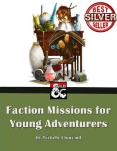 Short faction missions for younger players. Features missions from Bregan D'aerthe ¸ Emerald Enclave ¸ and the Harpers. Rather than focus on character level¸ each mission is broken down into three categories 1- Use Real Life Skills This style may be most appealing with pre-school or 4-6 year old players. Here players use their fine and gross motor skills as well as early language and math skills to complete missions. This is done using printed materials. 2- Use In Game Skills This style uses the in game mechanics of Dungeons and Dragons. It may be most appealing to players 5 and up who are starting to get a hang of the rules of the game. These missions have lots of dice rolling to help players learn to use their character sheet. Players use their dice rolls as they go about tasks or search for clues. 3- Combat Monsters This style allows players to combat monsters found in the Monsters Manual. These missions present low level monsters to challenge players. Providing suggestions for NPC assistance if the characters feel overwhelmed. Be sure to use your discretion as to what is most appropriate for your players. These can be used if you wanted to include a younger player briefly in an ongoing game of D&D¸ or if you wanted to run a quick family game after supper. Money tight? We're playing it forward¸ no strings attached! If you can't pay¸ we still want you to play! Please support us with whatever you can: Click here for 50% off Click here for 90% off (it won't count toward our bestseller medals¸ but that's okay!) Click here for 100% off (it won't count toward our bestseller medals¸ but that's okay!) If things start looking up¸ you can come back later to support our work; you can even re-purchase something you bought before¸ and pay more the second time. And if you don't¸ that's okay! We want everyone to enjoy this game we love so much. For more information on the #KeepPlayingItForward initiative¸ and for links to other participating products¸ visit keepplaying.carrd.co. Happy adventuring!