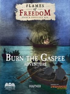 This Flames of Freedom adventure details the events of the capture and burning of the HMS Gaspee with added fictional horror events. The adventure takes place in Rhode Island colony (1772) and is considered a pivotal event in the lead-up to the American Revolutionary War. It can alternately be set in any colony or at any point around the revolution.