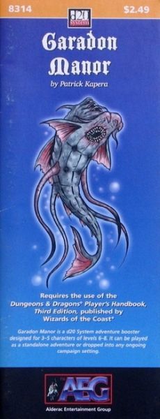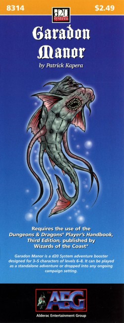 Requires the use of the Dungeons & Dragons Player's Handbook¸ Third Edition¸ published by Wizards of the Coast. Garadon Manor is a d20 System adventure booster designed for 3-5 characters levels 6-8. It can be played as a stand-alone adventure or dropped into any ongoing campaign setting.