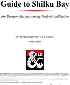 The firenewts of Hrakhamar have taken over the ruins of Shilku! Their Warlocks of Imix are causing the volcano that sits above the city to continually erupt. Players are tasked with removing this threat and preparing the land for the building of a new fort on the southern coast of Chult. This guide is meant to be used in conjunction with the Tomb of Annihilation adventure book. It uses monster statistics found in Tomb of Annihilation and in the 5 th edition Monster Manual¸ though no statistics are provided here. An 8-hour adventure for 2nd-5th level characters by Jason Brown.
