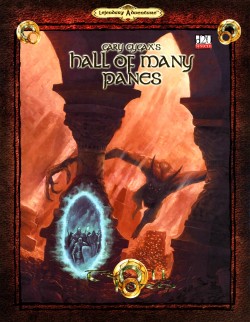 Troll Lord Games is proud to bring you Gary Gygax's Hall of Many Panes. An Adventure of Such Epic Proportions that it would not fit in one book! Gary Gygax's long anticipated Hall of Many Panes comes in a solid 11 x 8.5 inch box that is deep enough to hold ALL THREE 80+ page full-size adventure books that comprise this wild¸ high level adventure. With the adventure comes a fourth full-size book¸ containing 20 pages of art and maps! Reasonably priced at $39.95 The Hall of Many Panes brings customers more fun for their adventuring dollar. The Hall of Many Panes plunges the adventuring party into a dimensional matrix from which they must find their own way out. They find themselves on a long¸ thin ramp¸ ethereal darkness all about them. By looking up¸ or down¸ they spy strange shimmering lights. These are the panes of the Great Hall and lead to other worlds in time and space. The characters are pitted against all manner of eldritch beasts and magic. Gary Gygax's Hall of Many Panes is written in the classic style of sword and sorcery fantasy literature and is sure to grip players in many nights of pizza eating¸ soda drinking¸ dice throwing fun! The Hall of Many Panes is suitable for a party of six d20 adventurers of 8th or greater level.