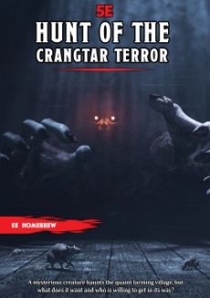 Hunt of the Crangtar Terror is a 5th level one shot adventure designed to take 3-5 hours to play. The party begins in Crangtar¸ a small farming village seat at a crossroads between roads to larger¸ more prosperous cities. The village has recently been set upon by some strange beast or band of men¸ and nearly half their flocks have disappeared¸ along with a great deal of stored grain.