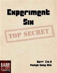 Experiment 6 is a basic no frills RPG.. All you need to play is some 6 sided dice¸ paper¸ graph paper¸ pencils and your imagination. This game is meant to be played by at least 2 Players and Game Master(GM) who runs the adventure for the Players.