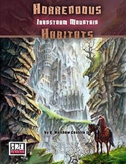 In the wintery peaks of the Ironstorm Mountain¸ greed and old evils have fought for domination. Centuries ago dwarven prospectors found the mountain that would later become known as Ironstorm (or Cair-Ebok to the dwarves) on the southern tip of a temperate east-west range. It was a veritable miner's cornucopia rich in iron¸ nickel¸ silver¸ zinc and that rarest of metals - mithral. Veins of precious gemstones ran through her core like frozen streams¸ for the mountain was closely connected to the Elemental Plane of Earth. Planar and geological fluctuations between the two realms caused new deposits of ore to appear spontaneously within the mountain.