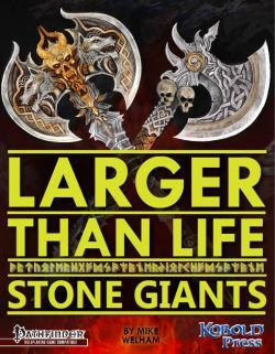 Larger Than Life: Stone Giants is a new 16-page PDF from RPG Superstar Mike Welham with plenty of material for Pathfinder Roleplaying Game GMs who want to bring giants into their game¸ including: